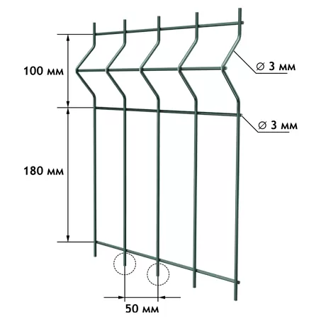 • прочность и долговечность — V-образные ребра жесткости и оцинкованная проволока с полимерным покрытием обеспечивают срок службы до 60 лет;